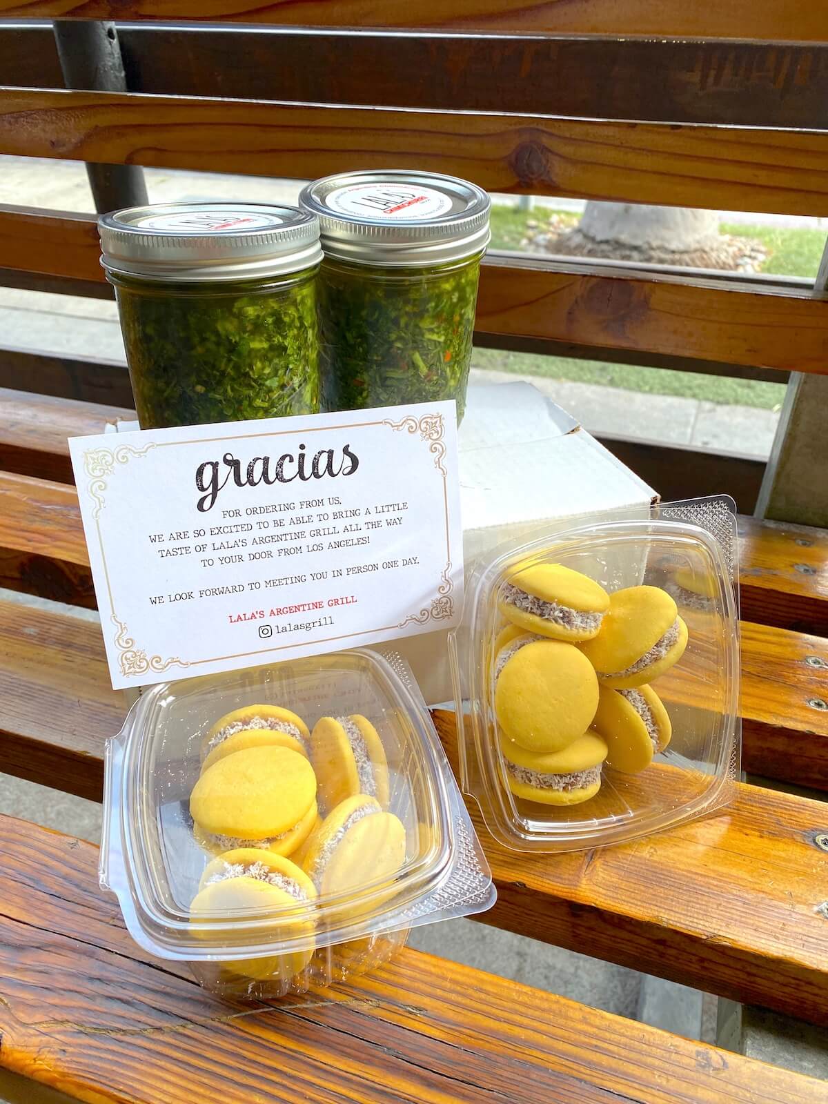This bundle contains TWO jars of chimichurri (16 oz) and TWO boxes of Alfajores (12 pieces)