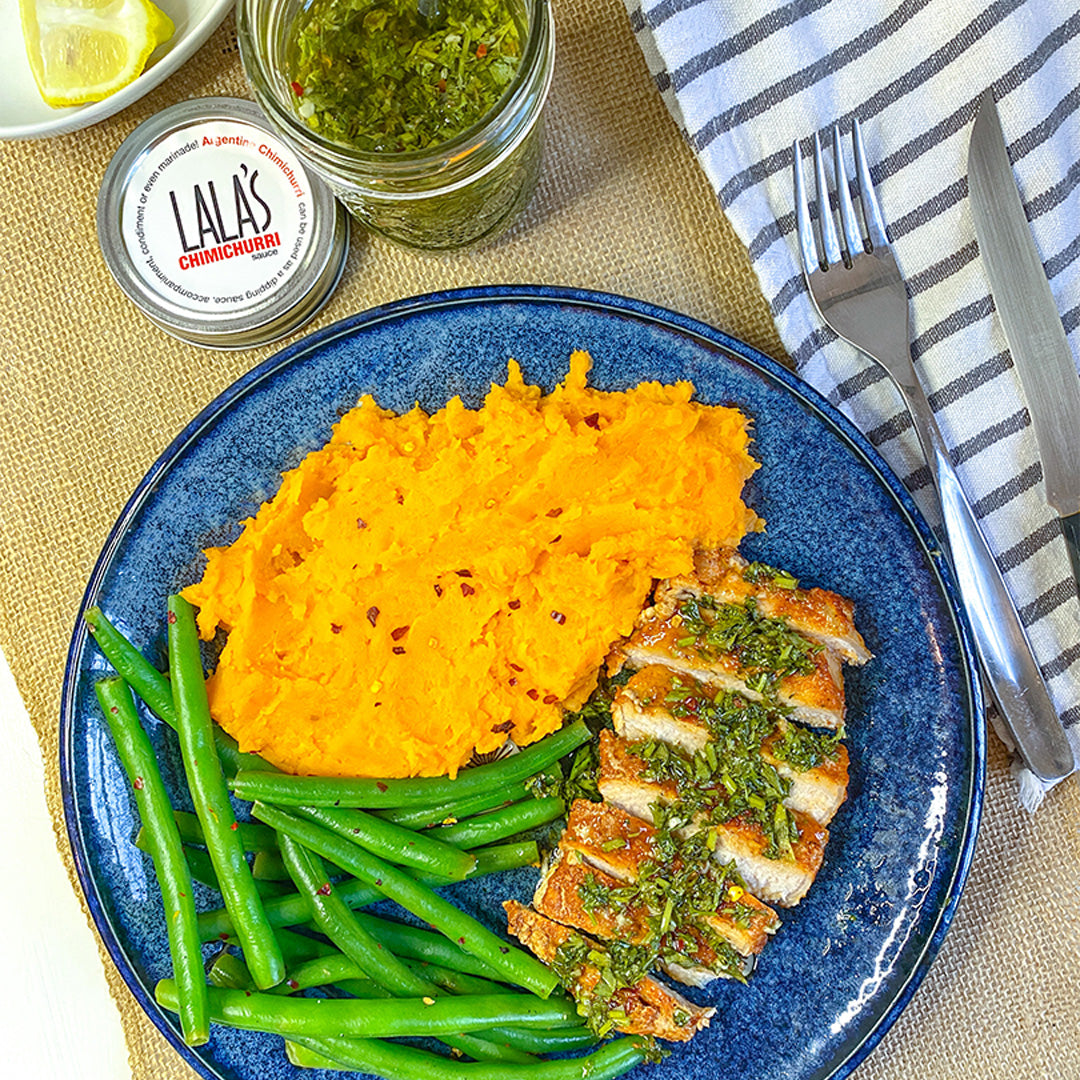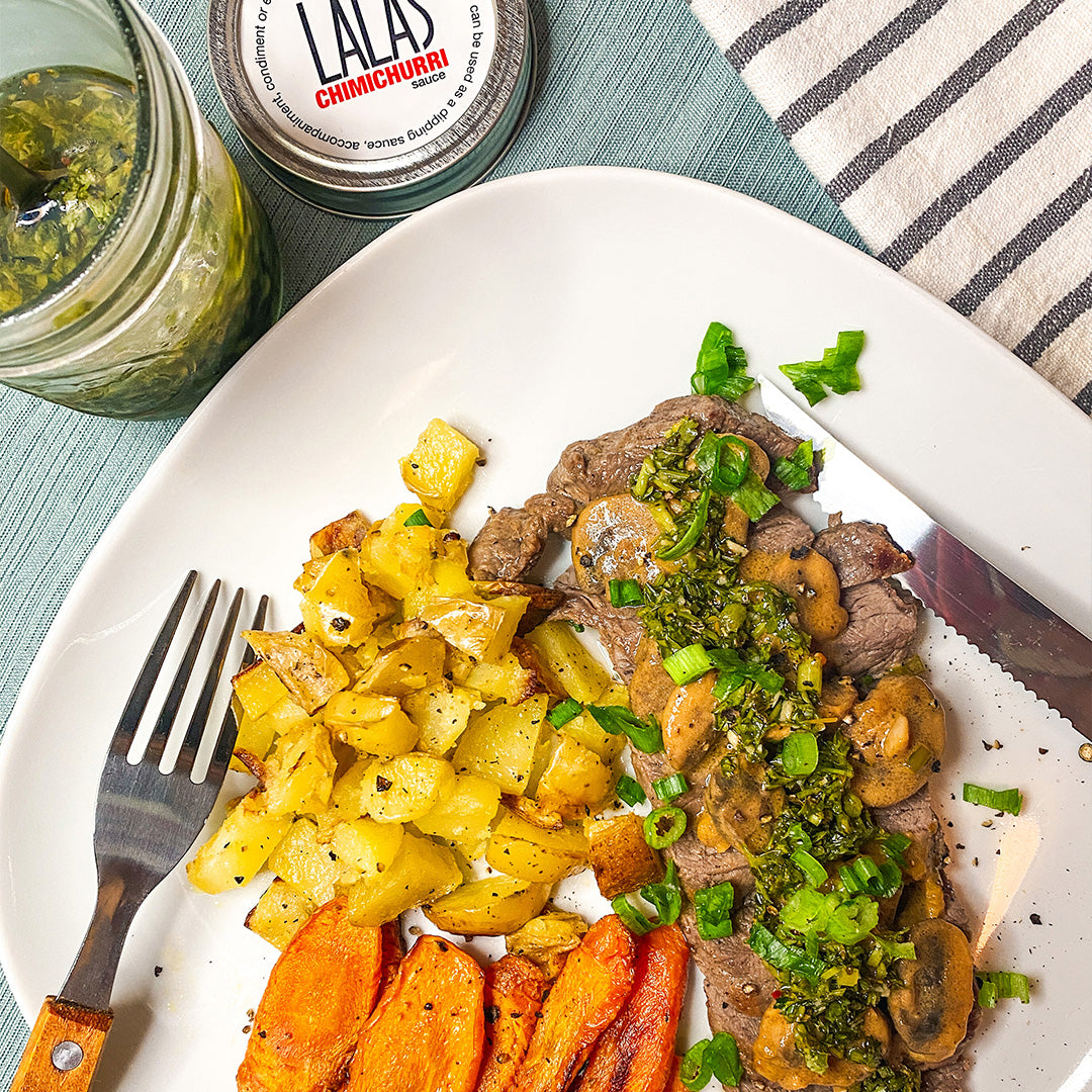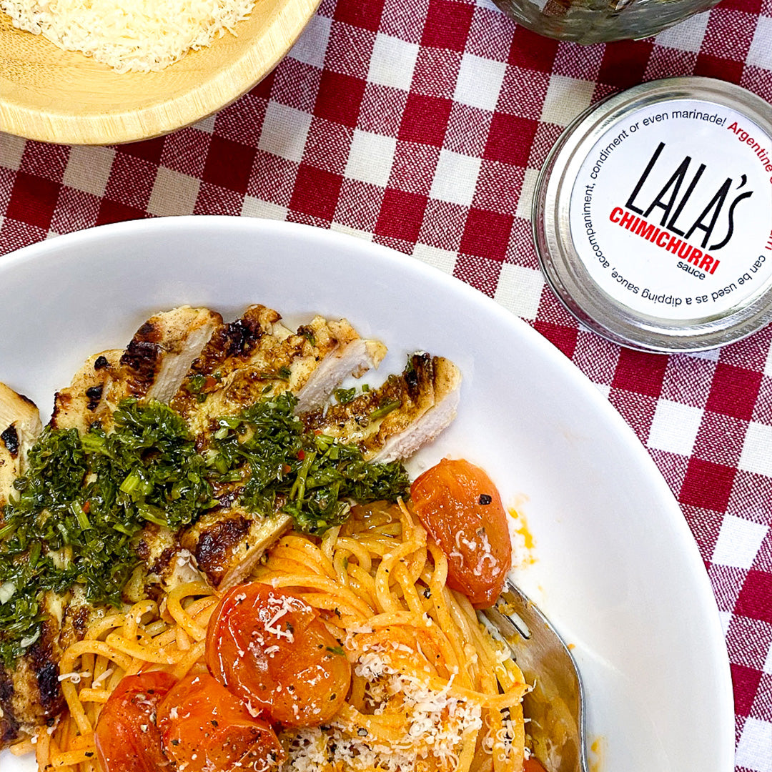 CHIMICHURRI INGREDIENTS: Parsley, oil blend (canola oil, olive oil), white distilled vinegar, lemon juice, garlic, crushed red pepper, dry oregano, sal
